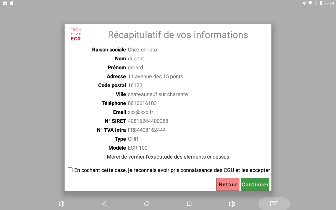5. Marca tu casilla para validar las condione generales de uso CGU) y pulsa « Continuar »