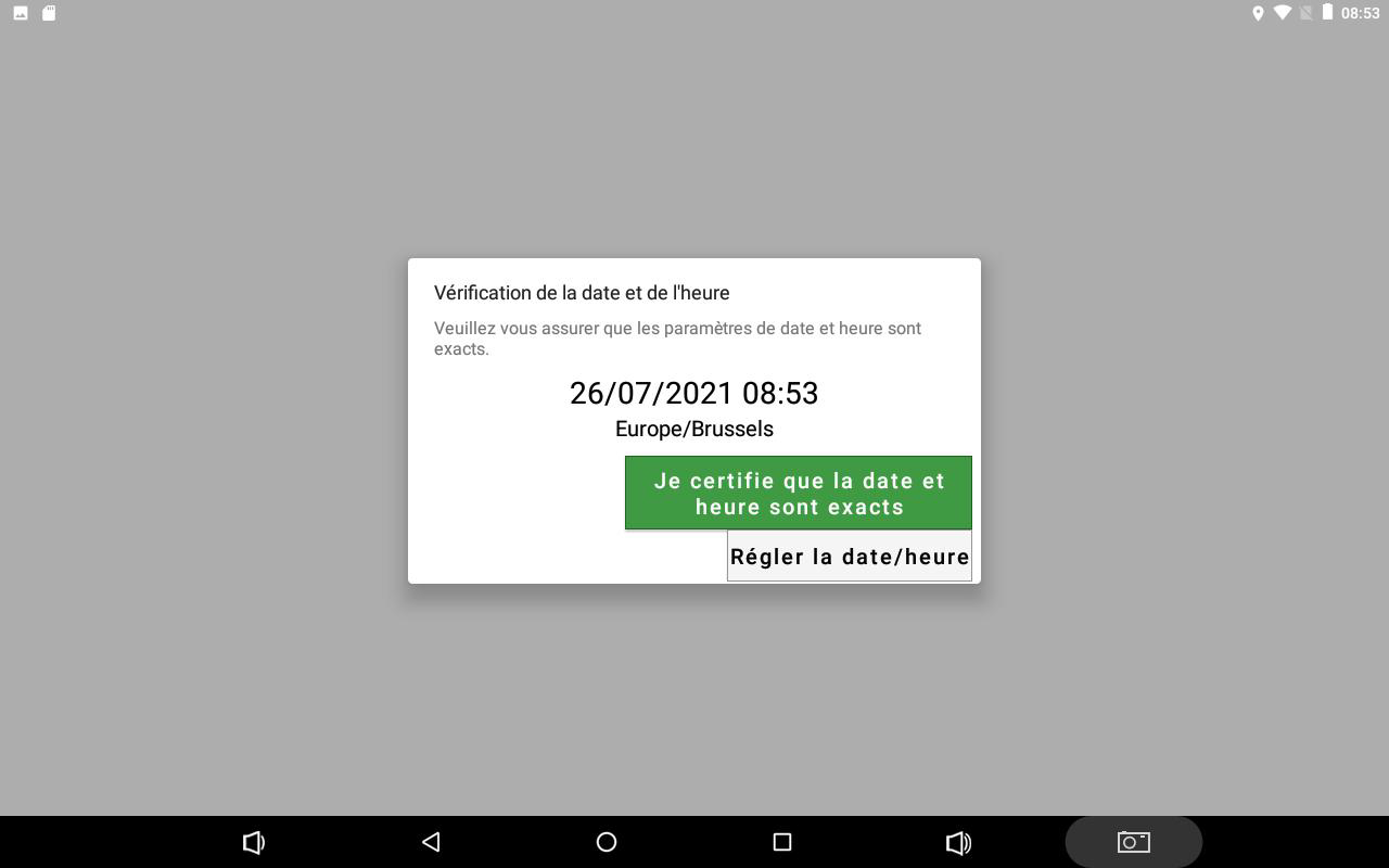Comprueba la fecha y hora y confirma. Puedes cambiar la fecha y la hora pulsando el botón « Establecer Fecha/Hora »
