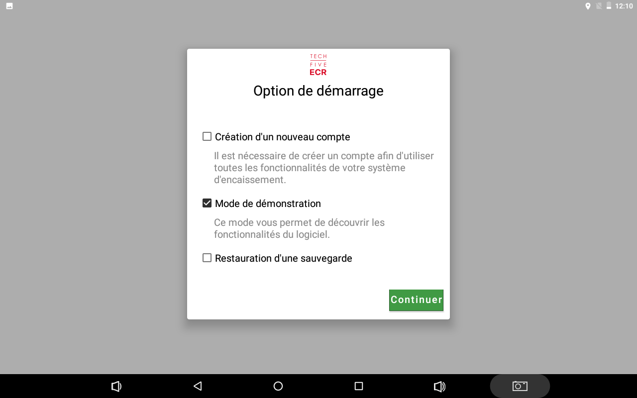 Selecciona el modo de demostración de HORECA y haz click en continuar