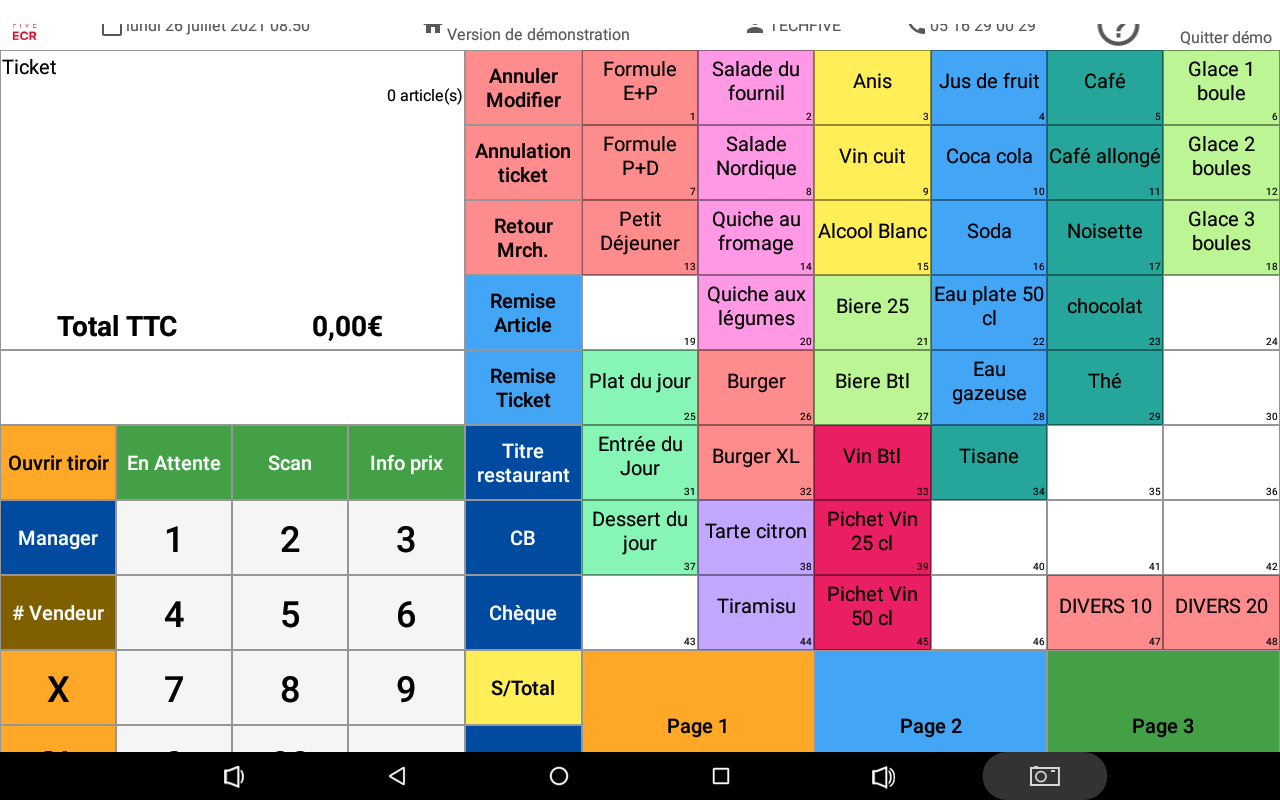 - Permite la caja registradora ECR100 con un programa Demostración: esto permitirá probar la máquina